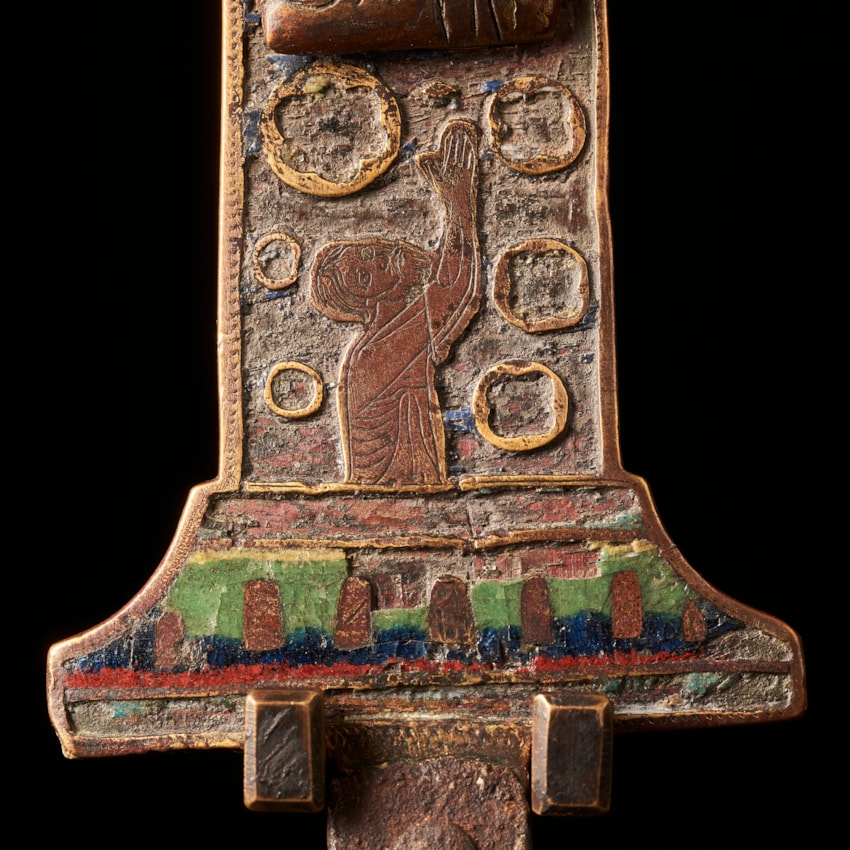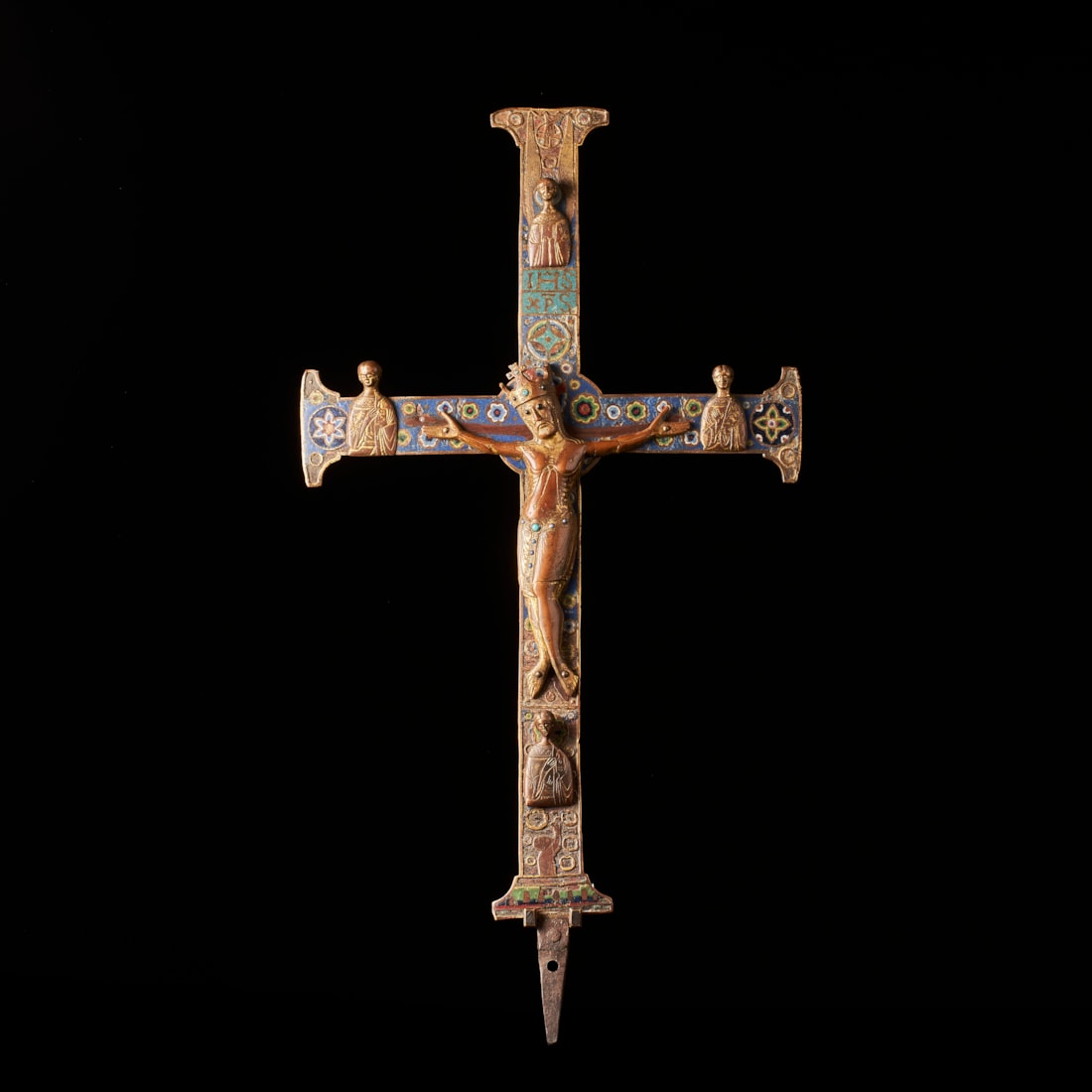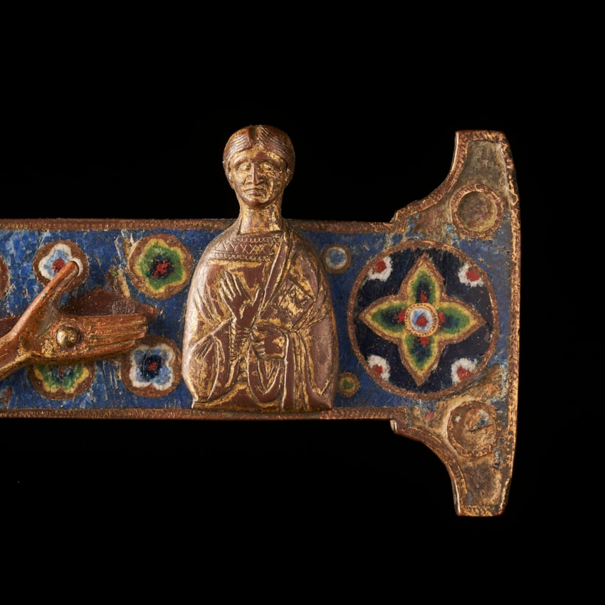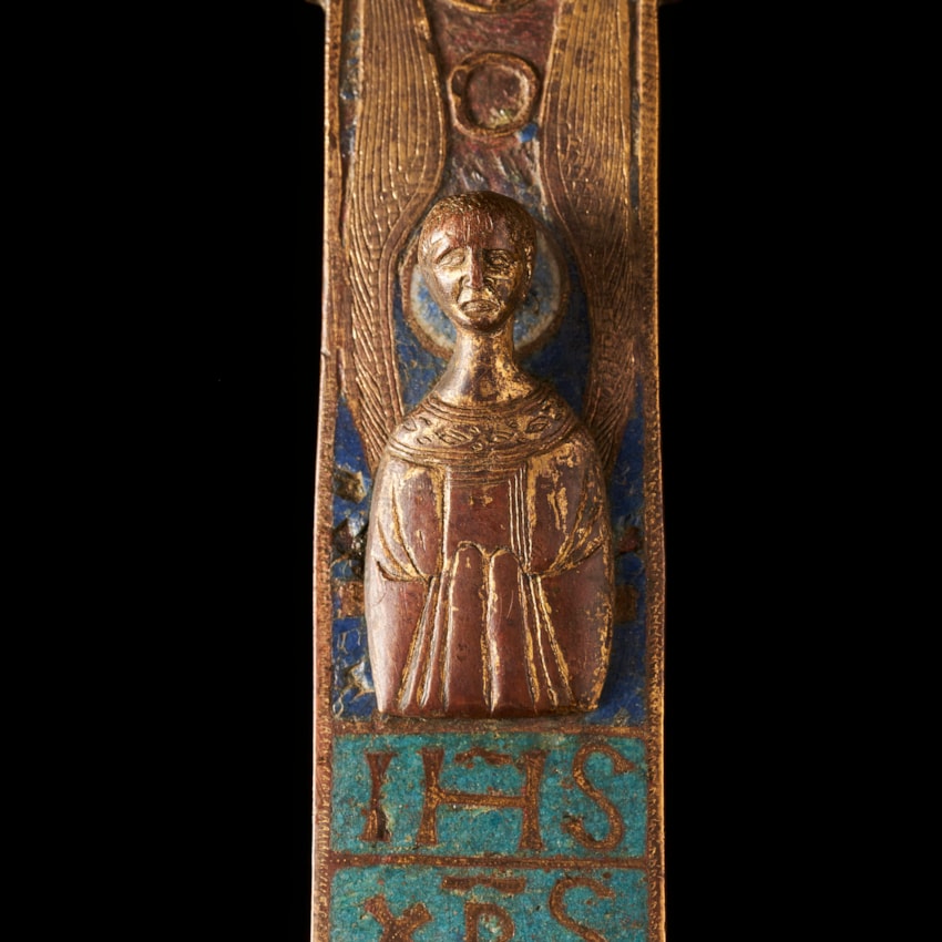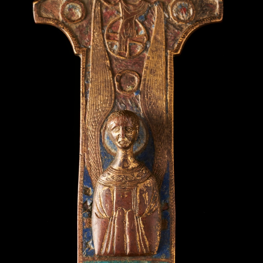 gilded and engraved copper with enamels Limoges, ca. 1220 45 by 27 cm Corpus gilded copper with enamels and gems Limoges, ca. 1220 h: 18 cm