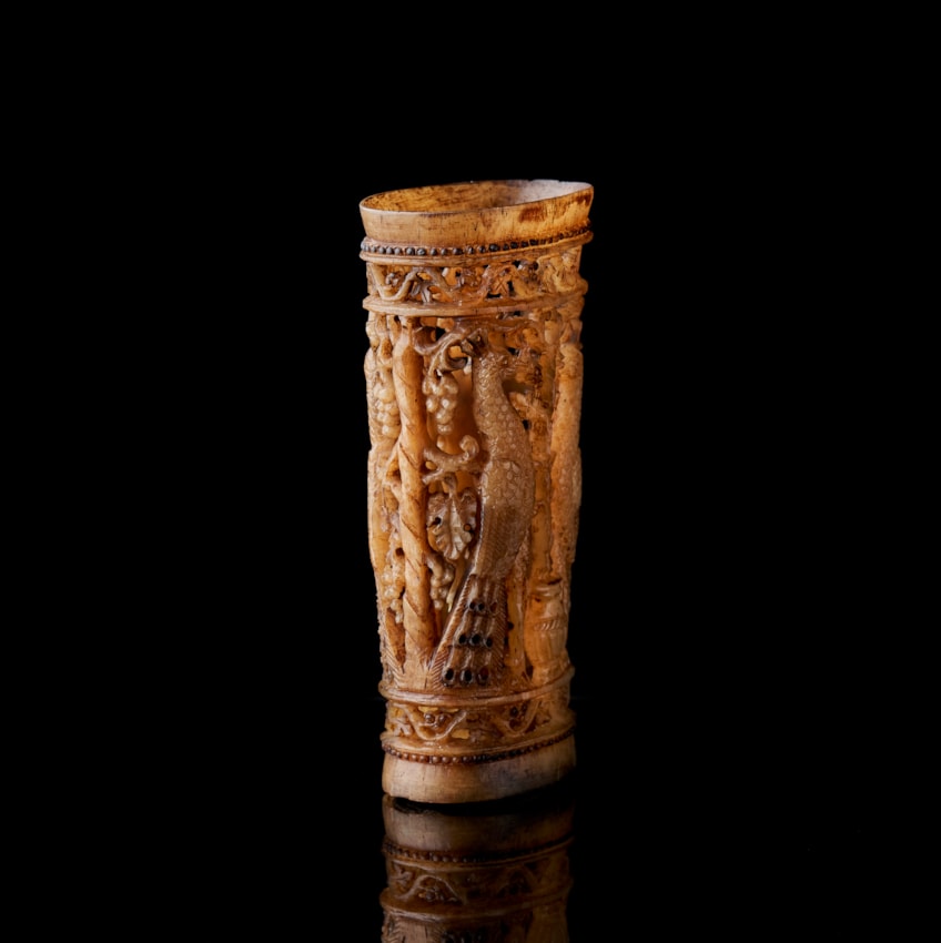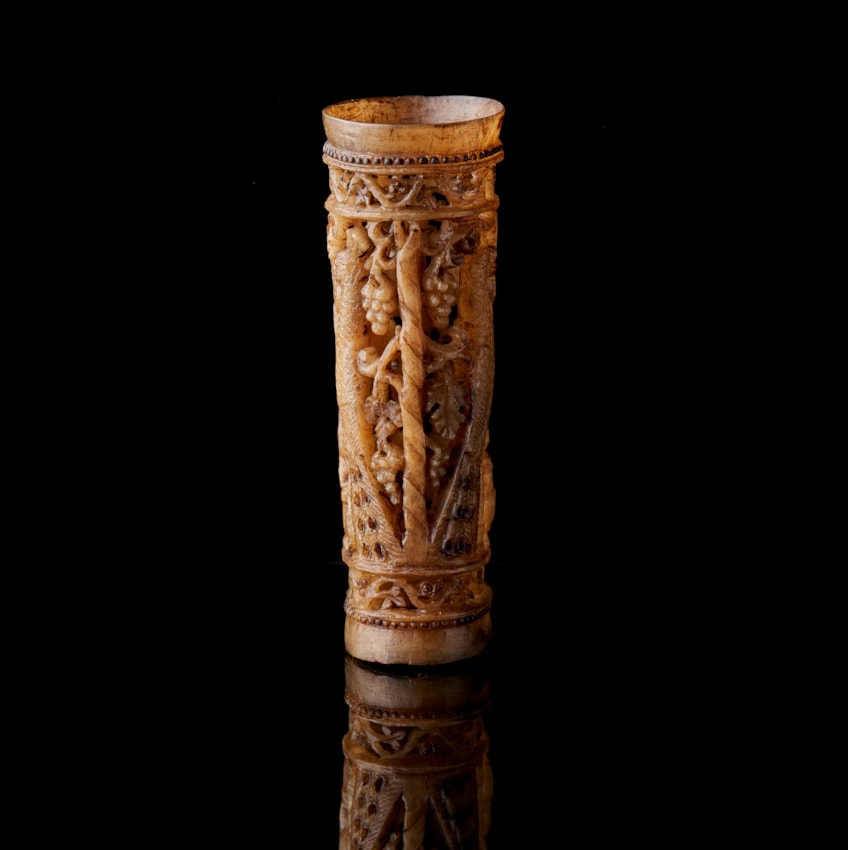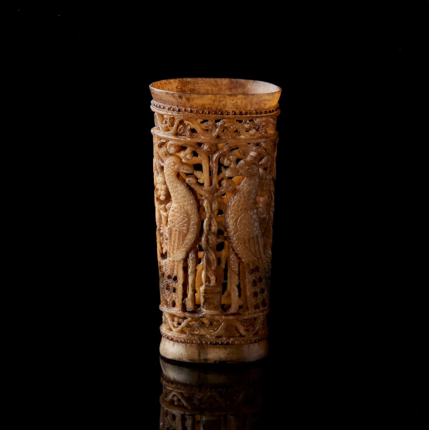 Byzantine Pyxis/beaker decorated with peacocks and grapevines